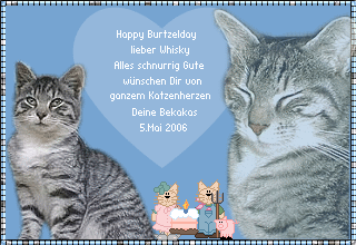 Oh wie süüüüüüss!!!!!!!! Meine lieben Berliner Freunde haben zwei ihrer reizenden Pixelkatzis zum Gratulieren geschickt! Und ein kleines Törtli haben sie mir auch mitgebracht :-)) Dicke Knutscher und lieben Dank an meine Kampfkatzis