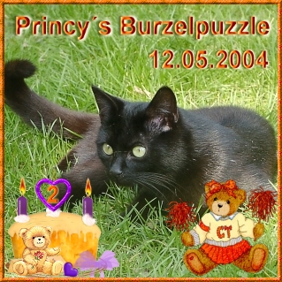 Natürlich dürft ihr wieder einen Preis mitnehmen, wenn ihr mich erfolgreich zusammengesetzt habt. Ich drücke euch meine Pfötchen zurück zur Geburtstagsfeier